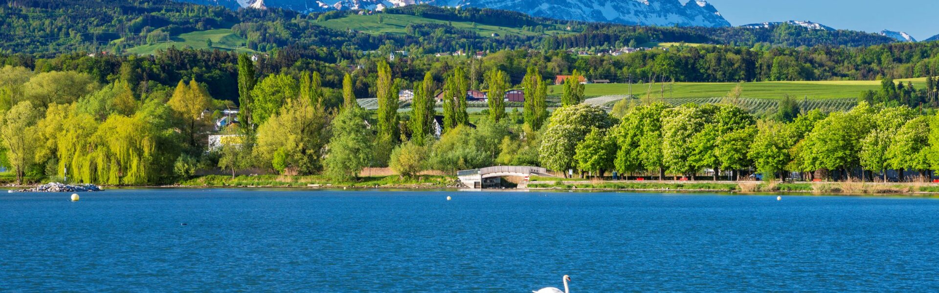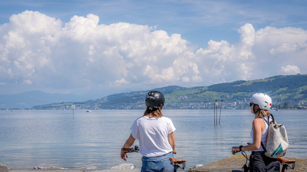 Weite Blicke übers Wasser und die Berge zum Greifen nah: Am südlichen Ufer des Bodensees breitet sich auf sanften Hügeln die Landschaft des Thurgaus aus. Ein Terrain wie fürs Velofahren modelliert.
